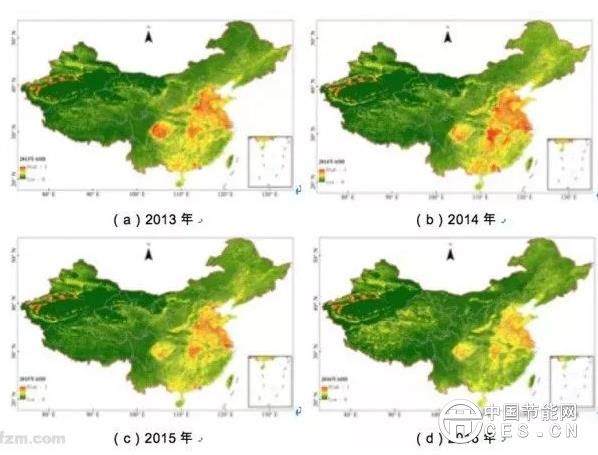 2013-2016年全国近地面PM2.5浓度卫星反演图 中国环境空气质量管理评估报告截图 | 图