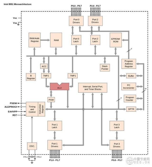 英特尔8051芯片的微架构(图片来源:维基百科)