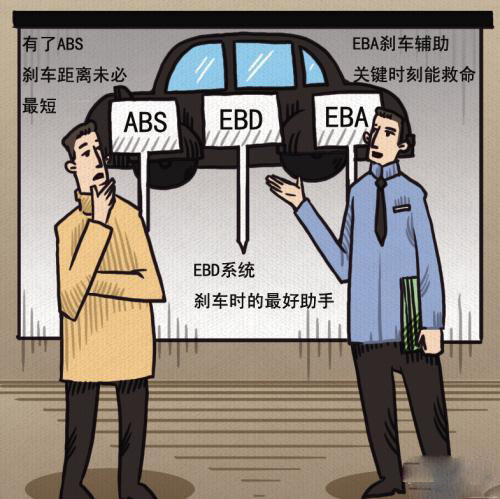 “ABS”(Anti-locked Braking System)中文译为“防抱死刹车系统”。它是一种具有防滑、防锁死等优点的汽车安全控制系统。ABS是常规刹车装置基础上的改进型技术,可分机械式和电子式两种。它既有普通制动系统的制动功能,又能防止车轮锁死,使汽车在制动状态下仍能转向,保证汽车的制动方向稳定性,防止产生侧滑和跑偏,是目前汽车上最先进、制动效果最佳的制动装置。 普通制动系统在湿滑路面上制动,或在紧急制动的时候,车轮容易因制动力超过轮胎与地面的摩擦力而完全抱死。