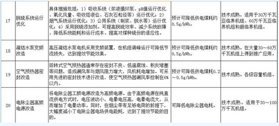 (十)实施综合节能改造。因厂制宜采用汽轮机通流部分改造、低温省煤器、电机变频、供热改造、机组余热余压利用等成熟适用的节能改造技术,重点推进30万千瓦级纯凝机组供热改造、60万千瓦级及以上机组综合性、系统性节能改造,改造后供电煤耗力争达到同类型机组先进水平。到2020年,实施节能改造机组规模5200万千瓦。
