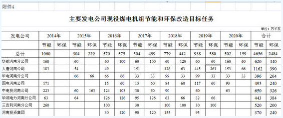 4、主要发电公司现役煤电机组节能和环保改造目标任务