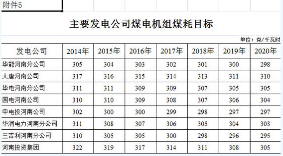 5、主要发电公司现役煤电机组平均煤耗目标任务