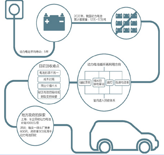 2012年7月出台的《节能与新能源汽车产业发展规划(2012~2020年)》就明确提出,要制定动力电池回收利用管理办法,建立梯级利用和回收管理体系,引导生产企业加强对废旧电池的回收利用,鼓励发展专业化的电池回收利用企业。
