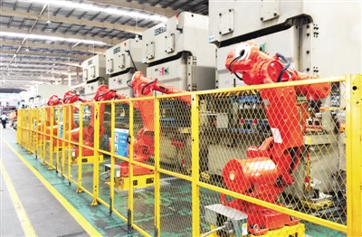 格力原创智能制造水平不断提升,图为格力自主研发的工业机器人在车间里忙碌作业。