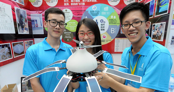 上海理工大学学生设计的“结合科恩达效应的微型太阳能战术侦察机”,可用于战术侦察、监测、航拍。