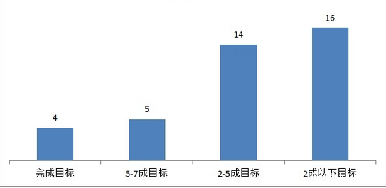 从推广目标完成率来看,除去4城市完成外,有5个城市(江苏、广东、广州、临沂、北京)完成率达50%以上,14个城市完成推广目标的20-50%,16个城市仅完推广目标的20-50%,16个城市仅完成推广目标的20%以下。