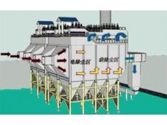 电袋复合除尘器是指在一个箱体内合理安装电除尘区和滤袋区,有机结合静电除尘和过滤除尘两种机理的一种除尘器。通常为前面设置电除尘区,后面设置滤袋区,二者为串联布置。电除尘区通过阴极放电、阳极收尘,能收集烟气中大部分粉尘,收尘效率大于85%,同时对未来收集下来的微细粉尘电离荷电。后级设置滤袋除尘区,使含尘浓度低并荷电的烟气通过滤袋过滤而被收集下来,达到排放浓度<30mg/Nm3环保要求。