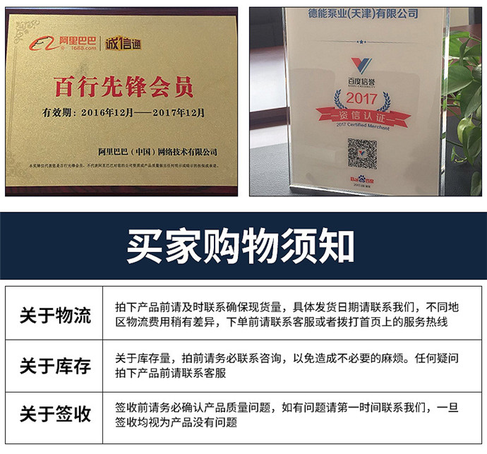 ④水泵使用之前在潜水电机腔内必须注满洁净的清水,以免通电发热烧坏线圈。