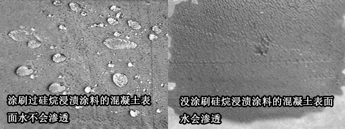 硅烷浸渍涂料的活性成分含量大于98.9%,为无色透明液体,异丁烯三乙氧基硅烷浸渍涂料特殊的小分子结构与混凝土基材有良好的附着力,能渗透到混凝土,优良的耐化学性、耐候性、耐磨性、耐沾污性、自洁功效,具有防水、抗紫外线、良好的透气性,使用寿命可长达25年左右。
